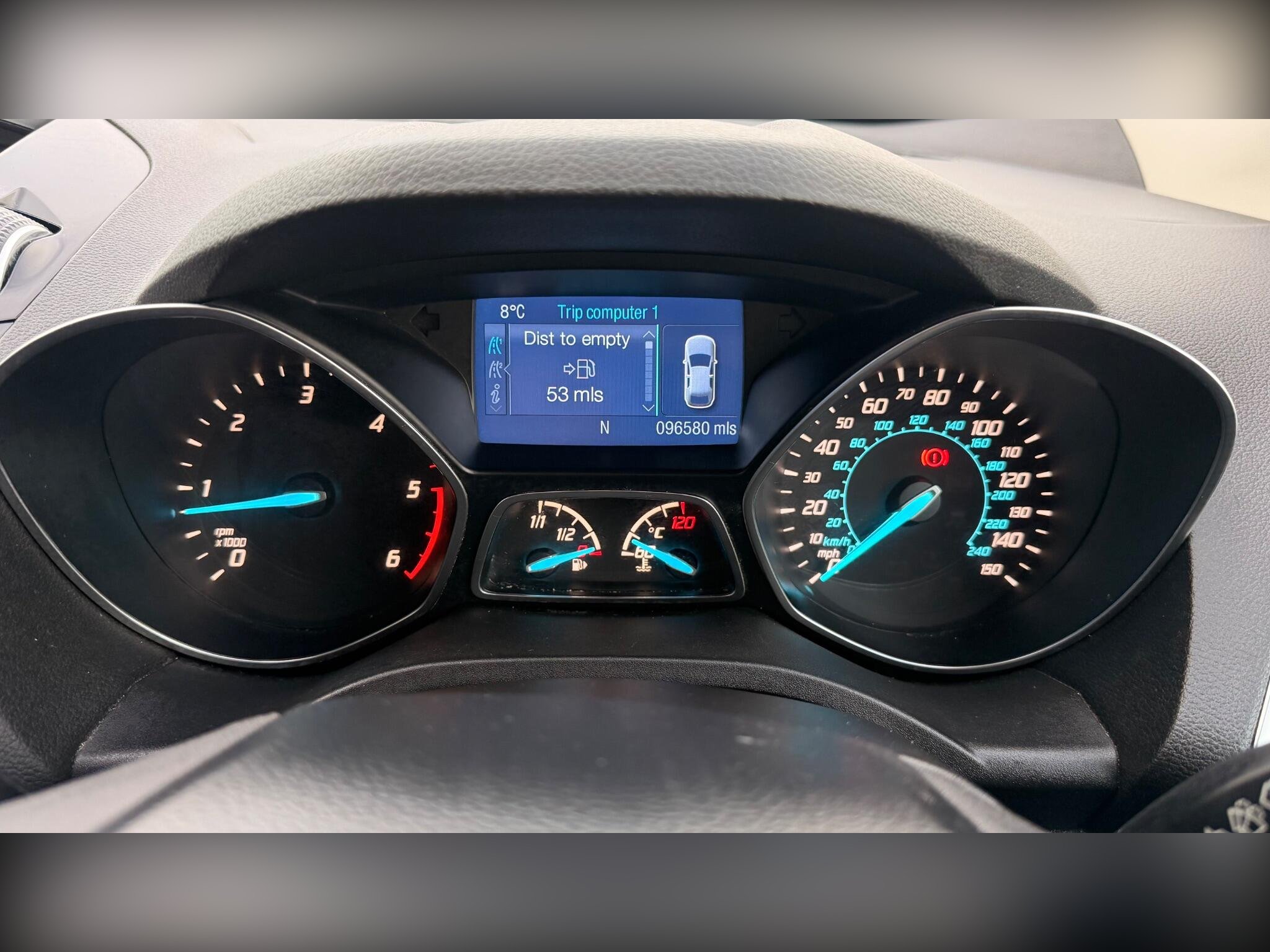 Inside, the Titanium specification provides a high level of comfort and technology. The interior is spacious, modern, and well finished, offering supportive seating and quality materials throughout. Features include a touchscreen infotainment system with Bluetooth connectivity, climate control, cruise control, and rear parking sensors, all designed to make every journey easier and more enjoyable. The generous cabin space ensures comfort for both front and rear passengers, while the large boot provides excellent practicality for family life, shopping, or travel.