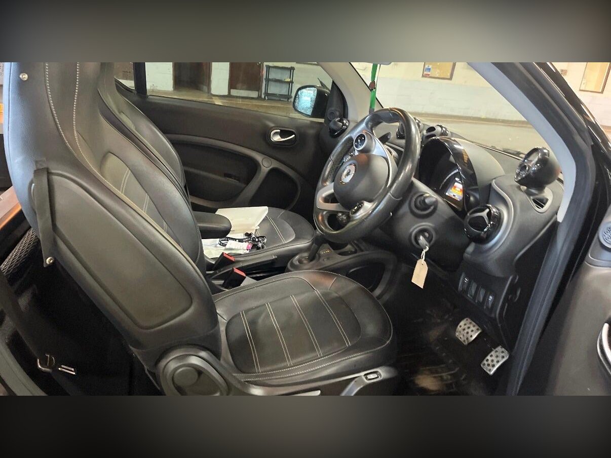 Discover this 2017 Smart Fortwo T Prime Sport (Premium Plus) with a 0.9L petrol engine, a Euro 6 compliant vehicle that offers an impressive 69 mpg. This model, presented in the Prime Sport trim, comes equipped with the Premium Plus equipment line, enhancing your driving experience with features such as automatic headlights, rear parking camera, and rear parking sensors. Inside, you will appreciate the automatic climate control, ensuring a comfortable cabin temperature regardless of the weather, and the heated seats for both the driver and front passenger, perfect for colder days. The panoramic roof with sun protection adds a sense of spaciousness and light to the interior.